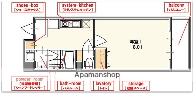 | 間取り詳細 | K(3.5帖)、洋室(8帖) | ||