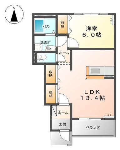 | 間取り詳細 | LDK(13.4帖)、洋室(6帖) | ||