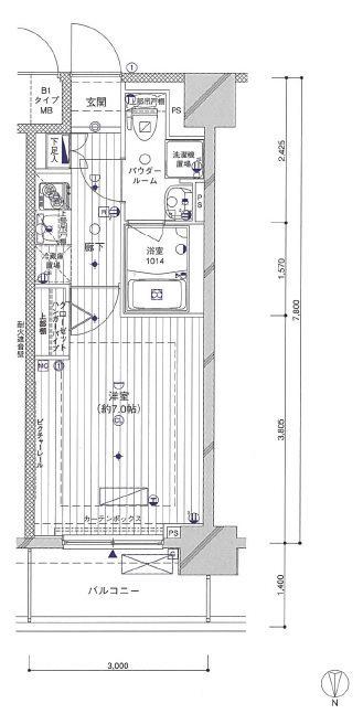 | 間取り | 1K | 専有面積 | 23.4m2 |