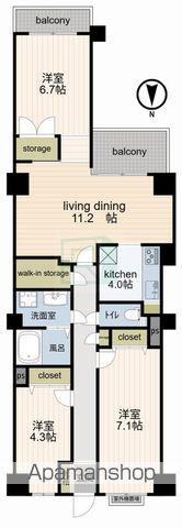 | 設備 | バス・トイレ別、オートロック、テレビドアホン、ウォークインクローゼット、システムキッチン、エレベーター、角部屋、バルコニー、フローリング、3口コンロ、コンロ:ガス | ||