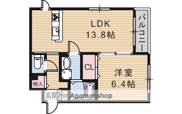 | 間取り詳細 | LDK(13.8帖)、洋室(6.4帖) | ||