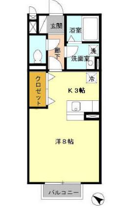 | 間取り詳細 | K(3帖)、洋室(8帖) | ||