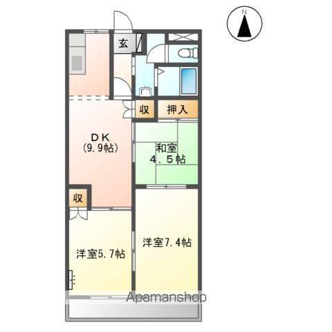 | 間取り詳細 | DK(9.8帖)、和室(4.5帖)、洋室(5.7帖)、洋室(7.4帖) | ||