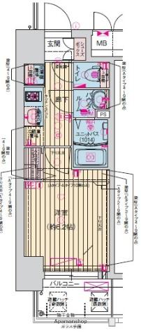 | 間取り | 1DK | 専有面積 | 25.84m2 |