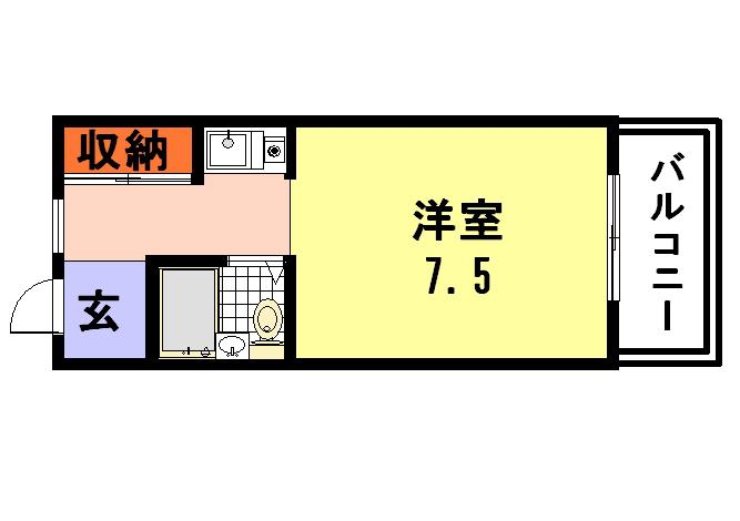 | 間取り詳細 | 洋室(7.5帖)、K(1帖) | ||