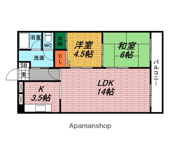 | 間取り詳細 | 和室(6帖)、洋室(4.5帖)、LDK(14帖) | ||