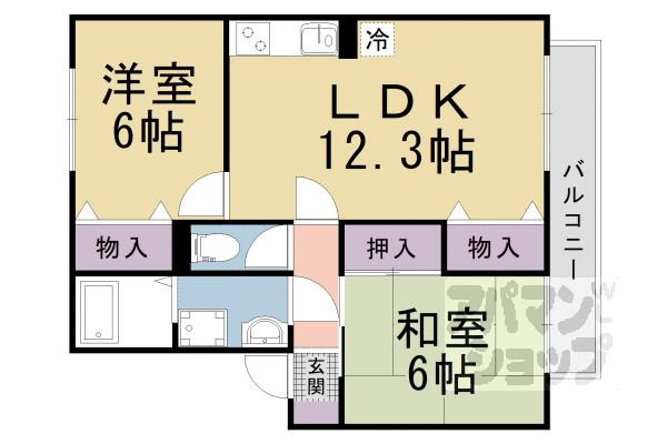 | 間取り詳細 | LDK(12.3帖)、洋室(6帖)、洋室(6帖) | ||