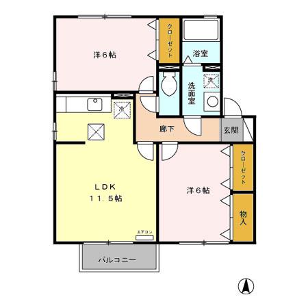 | 間取り詳細 | LDK(11.5帖)、洋室(6帖)、洋室(6帖) | ||