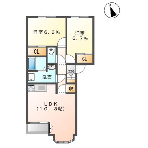 | 間取り詳細 | LDK(10.3帖)、洋室(6.3帖)、洋室(5.7帖) | ||