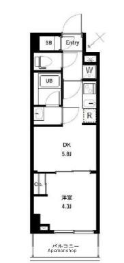 | 間取り詳細 | DK(5.8帖)、洋室(4.3帖) | ||