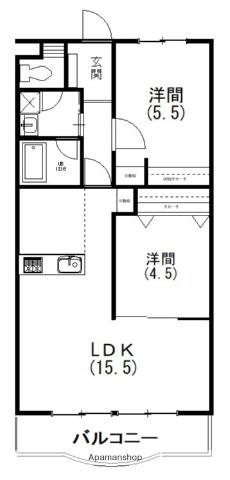 | 間取り詳細 | LDK(15.5帖)、洋室(5.5帖)、洋室(4.5帖) | ||
