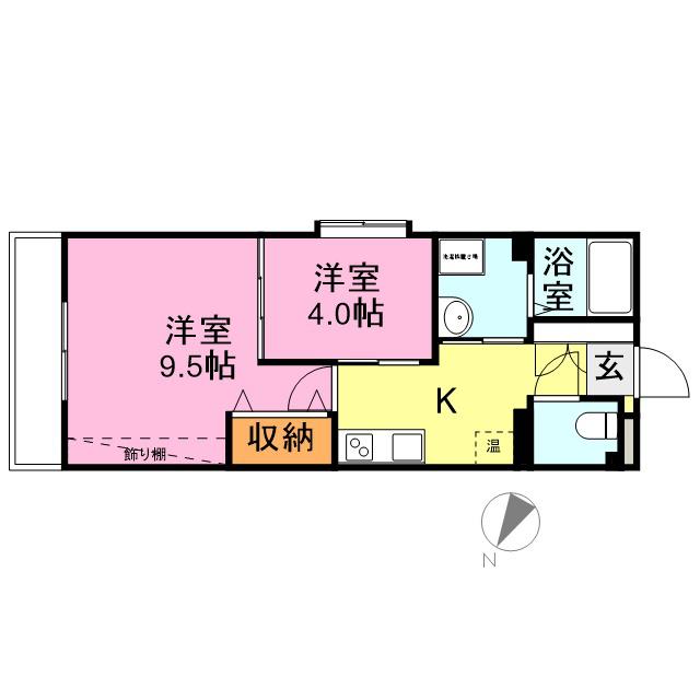 | 間取り詳細 | 洋室(9.5帖)、洋室(4帖) | ||