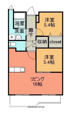 | 間取り詳細 | 洋室(5.4帖)、洋室(5.4帖)、LDK(16.4帖) | ||