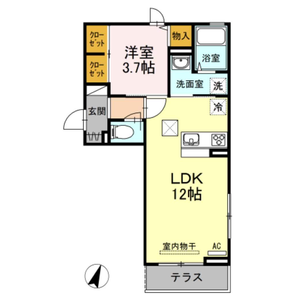 | 間取り詳細 | LDK(12帖)、洋室(3.7帖) | ||