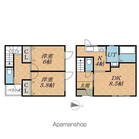 | 間取り詳細 | DK(8.5帖)、K(4帖)、洋室(6帖)、洋室(5.8帖) | ||