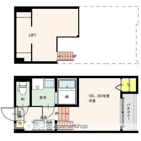 | 設備 | バス・トイレ別、テレビドアホン、浴室乾燥機、インターネット対応、システムキッチン、エアコン、温水洗浄便座、バルコニー、フローリング、ロフトあり、洗髪洗面化粧台、2口コンロ、コンロ:ガス、デザイナーズ、BSアンテナ、インターネット使用料無料、洗濯機:室内 | ||
