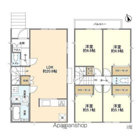 | 間取り詳細 | DK(20.6帖)、洋室(6.6帖)、洋室(6.6帖)、洋室(5.1帖)、洋室(5.1帖) | ||