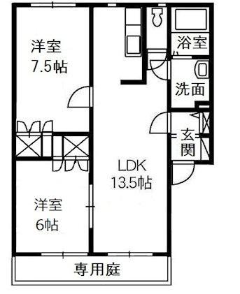 | 間取り詳細 | LDK(13.5帖)、洋室(7.5帖)、洋室(6帖) | ||