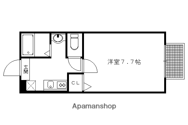 | 間取り詳細 | 洋室(7.7帖)、K(2帖) | ||