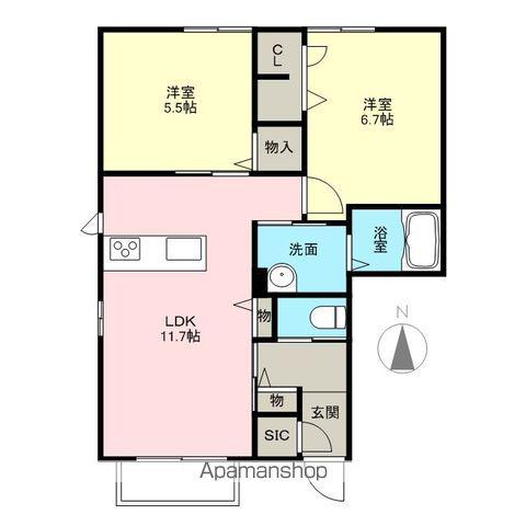 | 間取り詳細 | 洋室(6.7帖)、洋室(5.5帖)、LDK(11.7帖) | ||