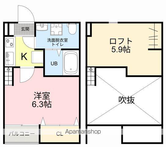 | 設備 | バス・トイレ別、テレビドアホン、追い焚き、光ファイバー対応、システムキッチン、温水洗浄便座、角部屋、バルコニー、フローリング、ロフトあり、コンロ:ガス、インターネット使用料無料、シャワー、給湯、冷房、洗濯機:室内 | ||