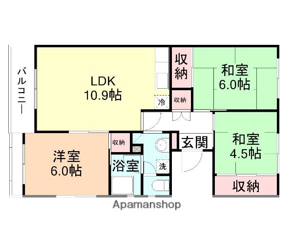 | 間取り詳細 | LDK(10.9帖)、洋室(6帖)、和室(6帖)、和室(4.5帖) | ||