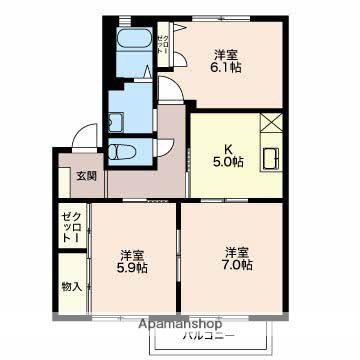 | 間取り詳細 | 洋室(6.1帖)、洋室(7帖)、洋室(5.9帖)、K(5帖) | ||