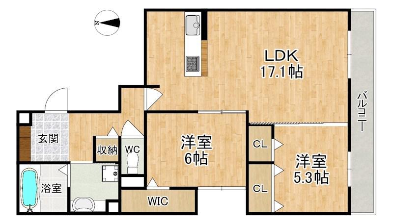 | 間取り詳細 | LDK(17.1帖)、洋室(5.3帖)、洋室(6帖) | ||