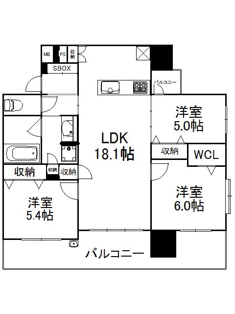 | 間取り詳細 | LDK(18.1帖)、洋室(6帖)、洋室(5.4帖)、洋室(5帖) | ||