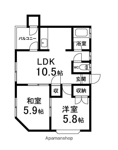 | 間取り | 2DK | 専有面積 | 44.7m2 |