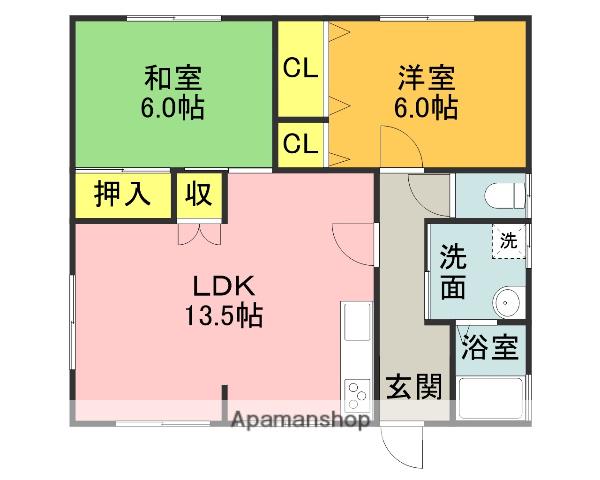 | 間取り詳細 | LDK(13.5帖)、洋室(6帖)、和室(6帖) | ||