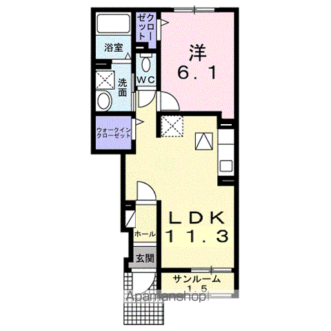 アパート シス エトワール ロジュマン(2DK/1階) | |||||||