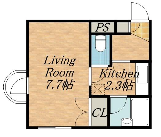 | 間取り詳細 | K(2.3帖)、洋室(7.7帖) | ||