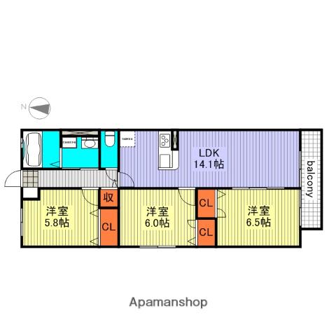 | 間取り詳細 | LDK(14.1帖)、洋室(6.5帖)、洋室(6帖)、洋室(5.8帖) | ||