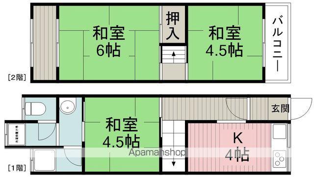| 間取り詳細 | K(4帖)、和室(6帖)、和室(4.5帖)、和室(4.5帖) | ||