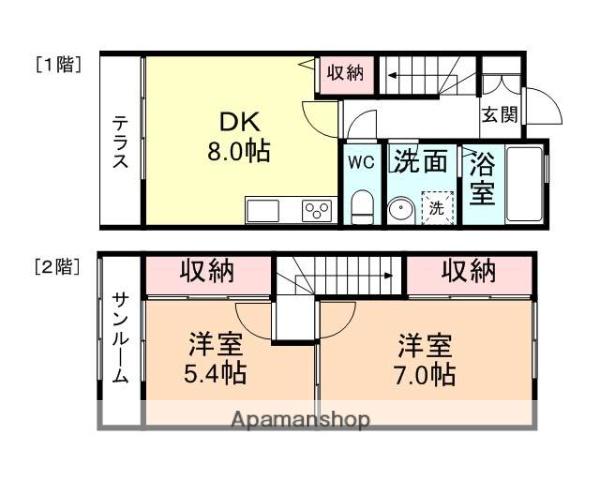 | 間取り詳細 | DK(8帖)、洋室(5.4帖)、洋室(7帖) | ||