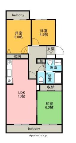 | 間取り詳細 | LDK(10帖)、洋室(6帖)、洋室(4.5帖)、和室(6帖) | ||