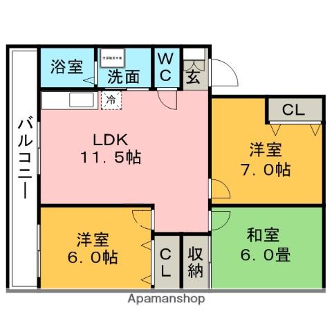 | 間取り詳細 | LDK(11.5帖)、洋室(7帖)、洋室(6帖)、和室(6帖) | ||