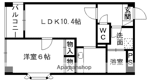 | 間取り詳細 | LDK(10.4帖)、洋室(6帖) | ||
