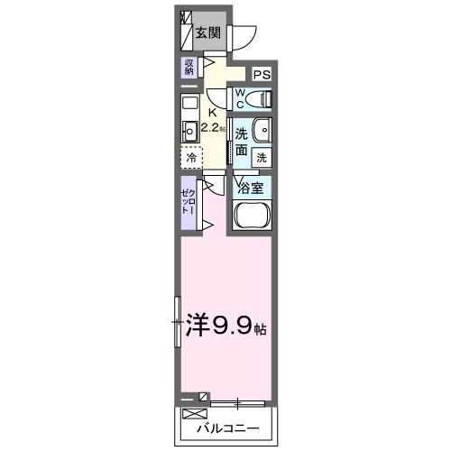 | 間取り詳細 | 洋室(9.9帖)、K(2.2帖) | ||