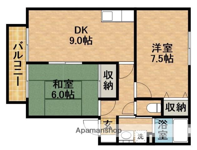 | 間取り詳細 | 洋室(7.5帖)、和室(6帖)、DK(9帖) | ||