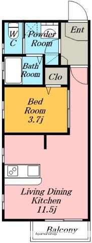 | 間取り詳細 | LDK(11.5帖)、和室(3.7帖) | ||