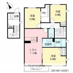 | 間取り詳細 | LDK(12帖)、洋室(6.4帖)、洋室(5.9帖)、洋室(4.9帖) | ||