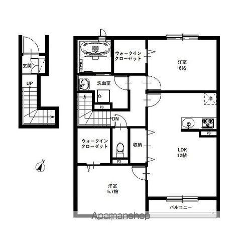 | 間取り詳細 | LDK(12帖)、洋室(5.7帖)、洋室(6帖) | ||