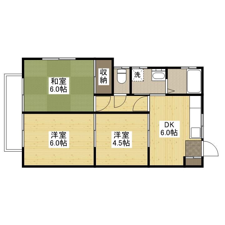 | 間取り詳細 | DK(6帖)、和室(6帖)、洋室(6帖)、洋室(4.5帖) | ||