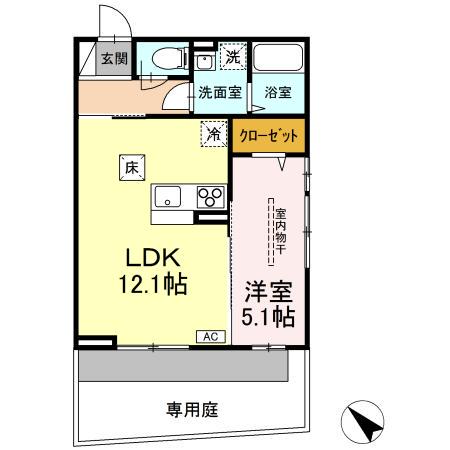 | 間取り詳細 | LDK(12.1帖)、洋室(5.1帖) | ||