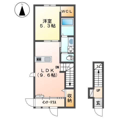 | 間取り詳細 | LDK(9.6帖)、洋室(5.3帖) | ||