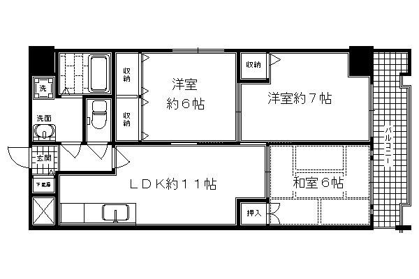 | 間取り詳細 | LDK(11.6帖)、洋室(6帖)、和室(6帖)、洋室(5帖) | ||