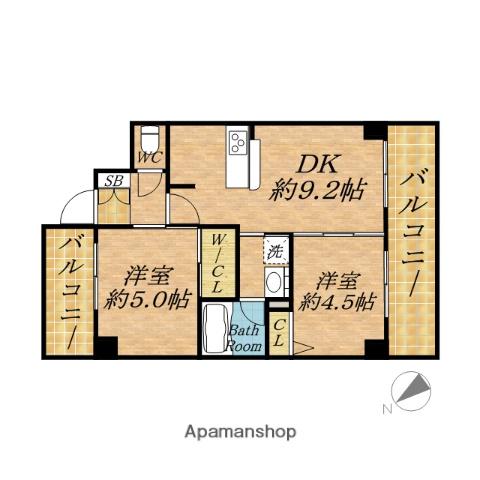 | 間取り詳細 | 洋室(4.5帖)、洋室(5.2帖)、DK(9.2帖) | ||