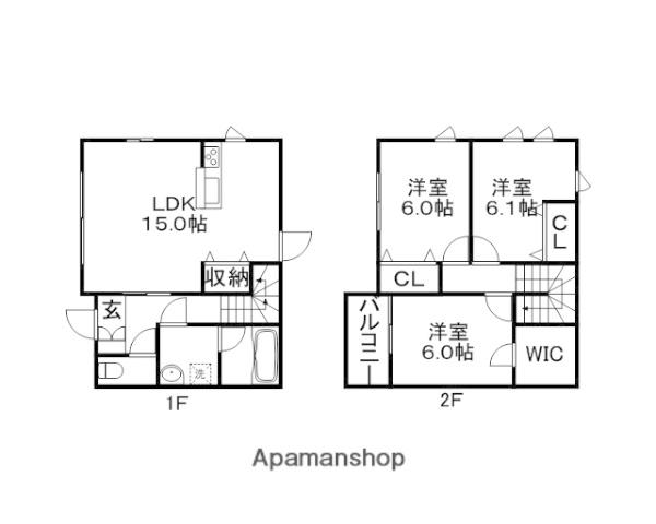 | 間取り詳細 | LDK(15帖)、洋室(6.1帖)、洋室(6帖)、洋室(6帖) | ||